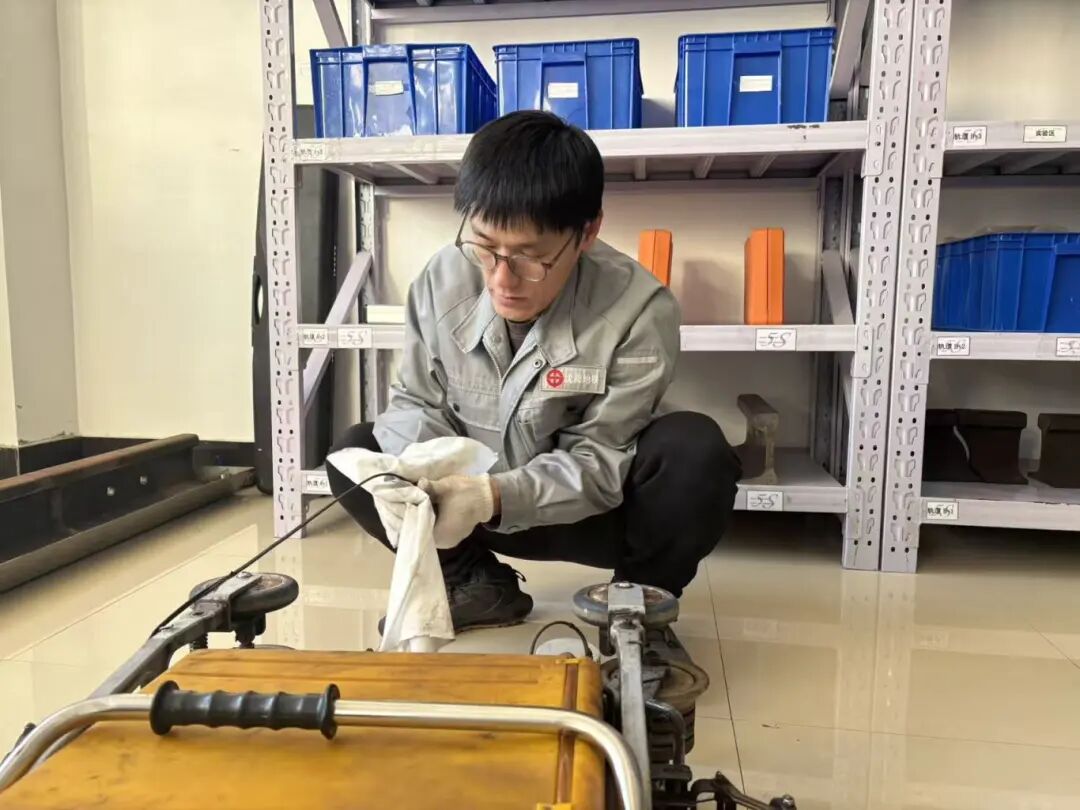 在绿色生产的道路上,牟海阳同样从细节处发力。他带领班组将传统探伤用的耦合剂,更换为可降解材质,从源头上减少了对轨道周边环境的污染,用实际行动践行着环保理念。