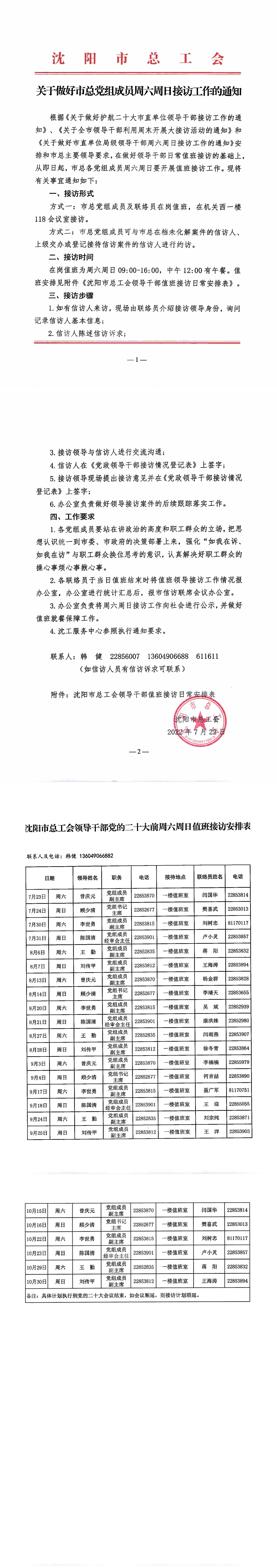 关于做好市总党组成员周六周日接访工作的通知