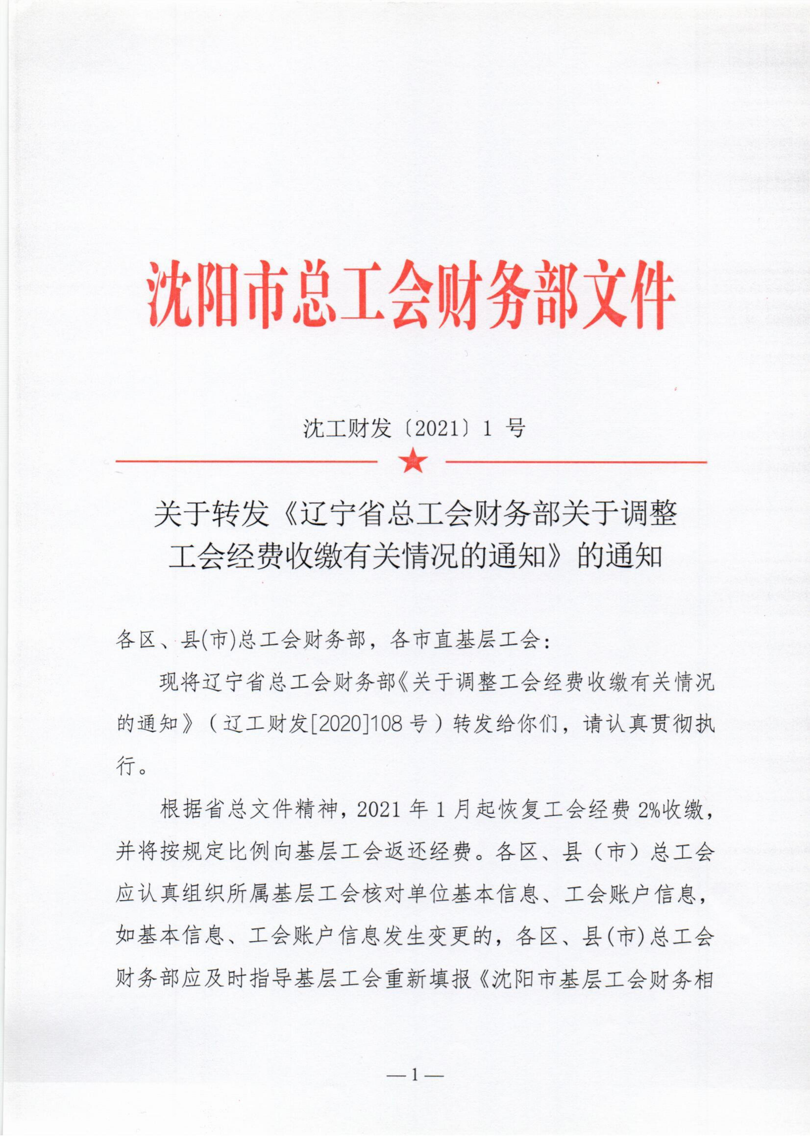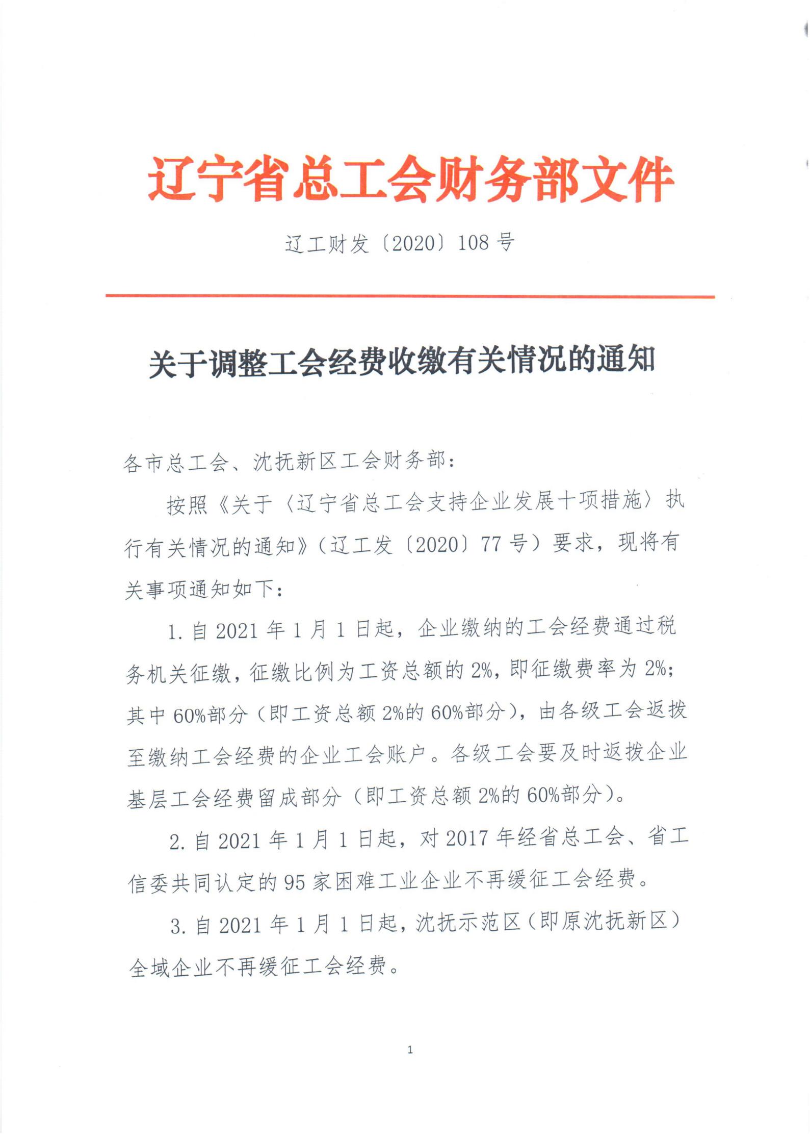 关于转发《辽宁省总工会财务部关于调整工会经费收缴有关情况的通知》的通知